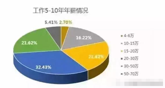经过5到10年的工作,年收入超过10万以上的超过90%,只有2.7%不到6万。 据《2018年中国程序员现状报告》调查显示,年薪5W以下的程序员仅占6.2%,且年龄都在25岁以下,工作年限只有1-2年;大多数程序员年薪在9-30w,平均月薪达到10k以上;年薪40万以上平均年龄为36岁。如图所示: