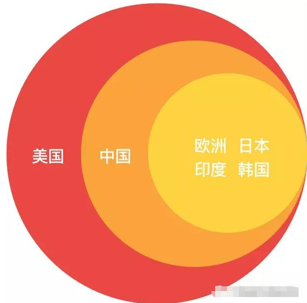 平均水平:中国 =美国 >欧洲 =印度 >日本 =韩国