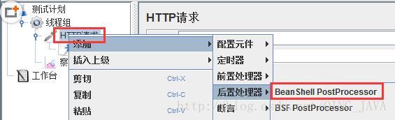 2、右键httpSampler,添加“BeanShell PostProcessor”元件;