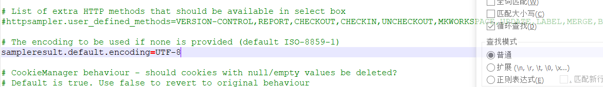 打开 %JMeter_HOME%\bin\jmeter.properties文件,搜索“sampleresult.default.encoding”,找到sampleresult.default.encoding的编码设置代码;修改编码与被测系统同样的编码方式,如UTF-8,去掉“#”(注释符号),保存设置,并重启Jmeter验证即可。