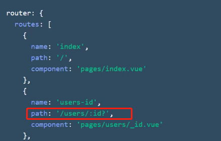 - 文件名以下划线开头 _id.vue,,nuxt 自动匹配