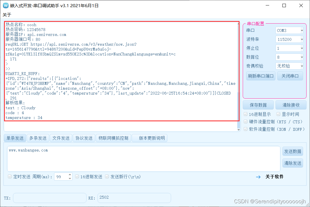 API接口格式:https://api.seniverse.com/v3/weather/now.json?your_api_key&location=Nanchang&language=en&unit=c