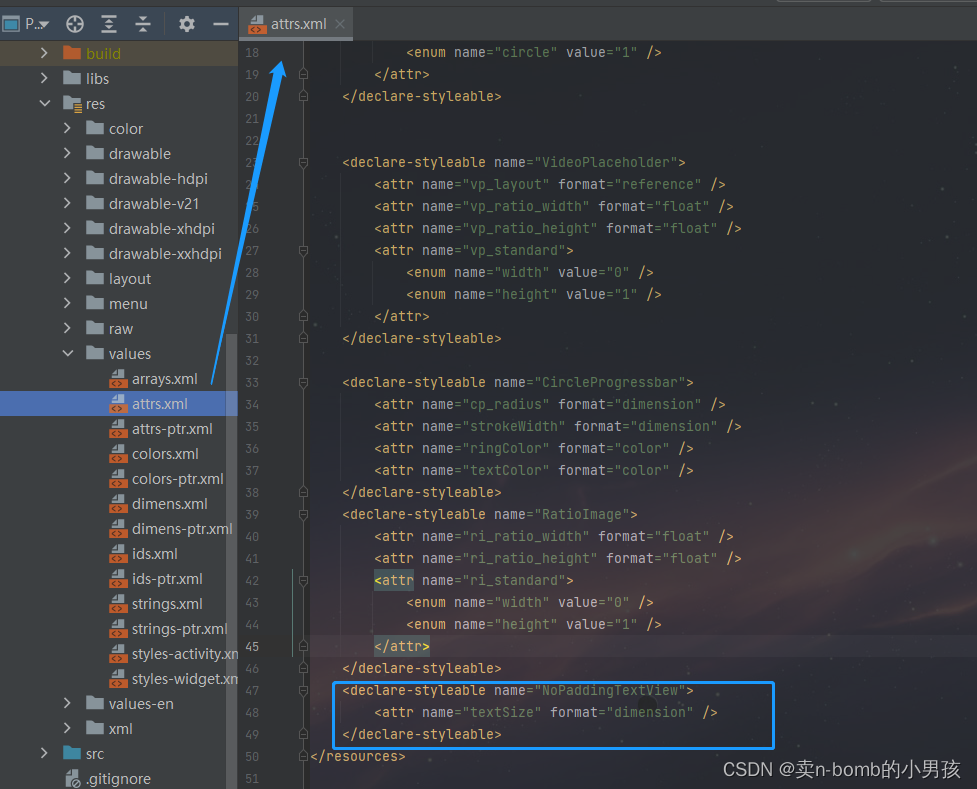 setTextSize(TypedValue.COMPLEX_UNIT_PX, a.getDimension(R.styleable.NoPaddingTextView_textSize, 12));