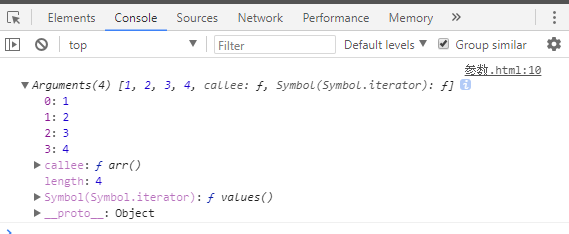 console.log(arguments);//arguments中存储了传送过来的arr(1,2,3,4)所有实参
