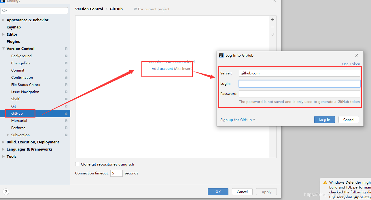 5.在IDEA中设置GitHub,File–>Setting->Version Control–>GibHub