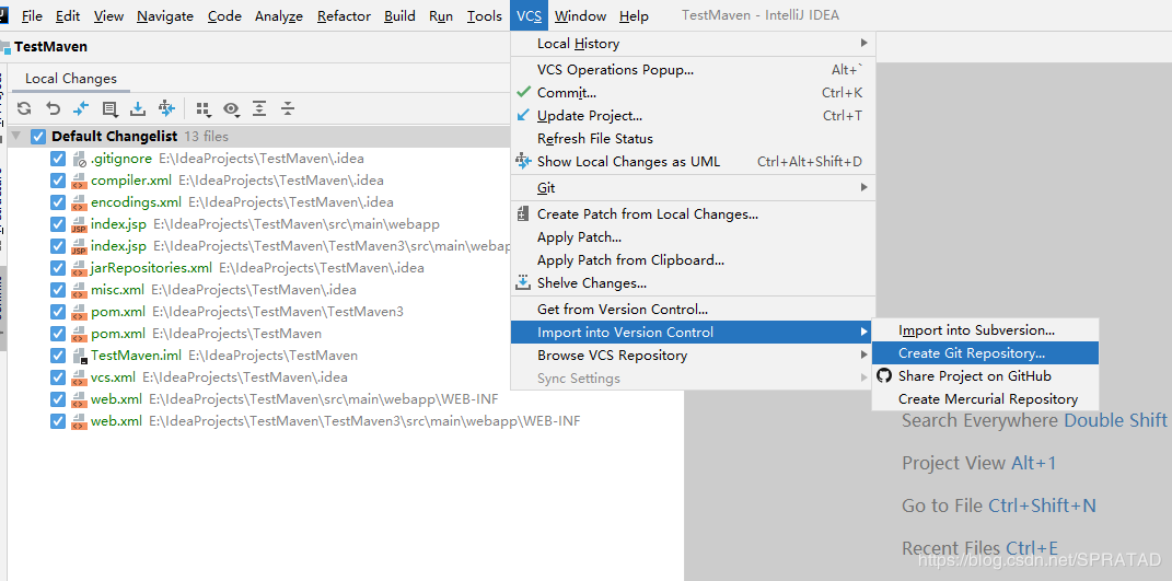 6.创建本地仓库,VCS–>Import into Version Control–>Create Git Repository…