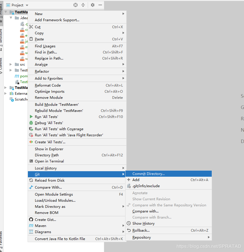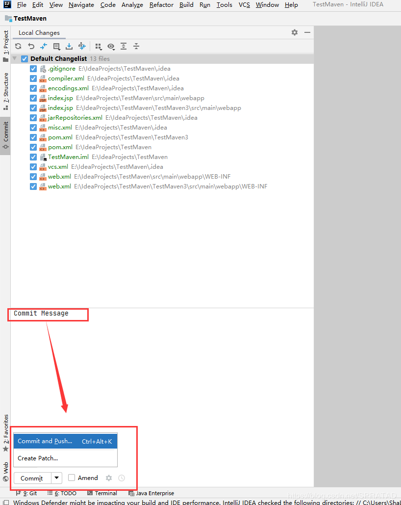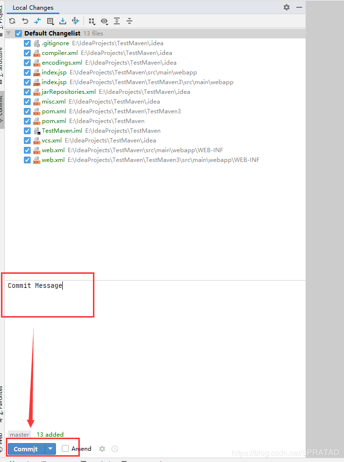项目右键Git–> Commit Directory,在弹窗中输入Commit Message,点击commit,此时项目文件从暂存区真正进入版本库中,项目文件变成白色