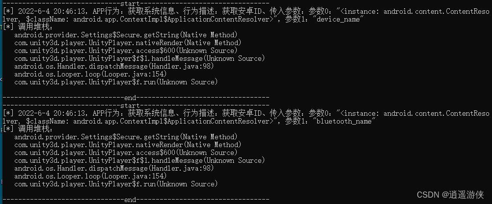 运行camille.py后发现确实有Unity插件调用到获取信息的接口,比如android_id,处理方法如下贴所示:Unity启动时获取了android_id等设备信息 - 简书