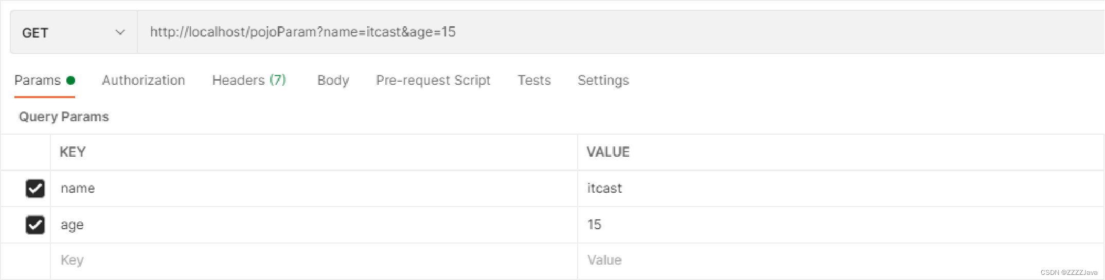 }//POJO参数:请求参数与形参对象中的属性对应即可完成参数传递