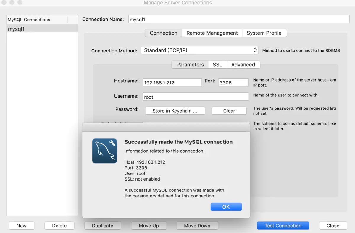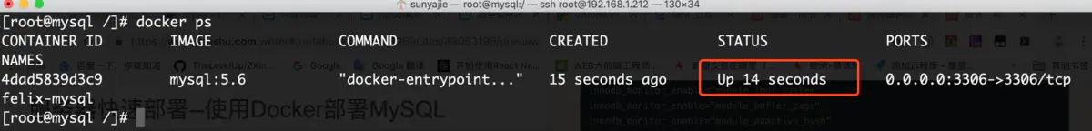 一切正常。现在我们已经成功使用Docker部署了MySQL,其实也可以使用dockerfile来简化过程,不过为了尽快做好测试环境,所以本文就不介绍了。