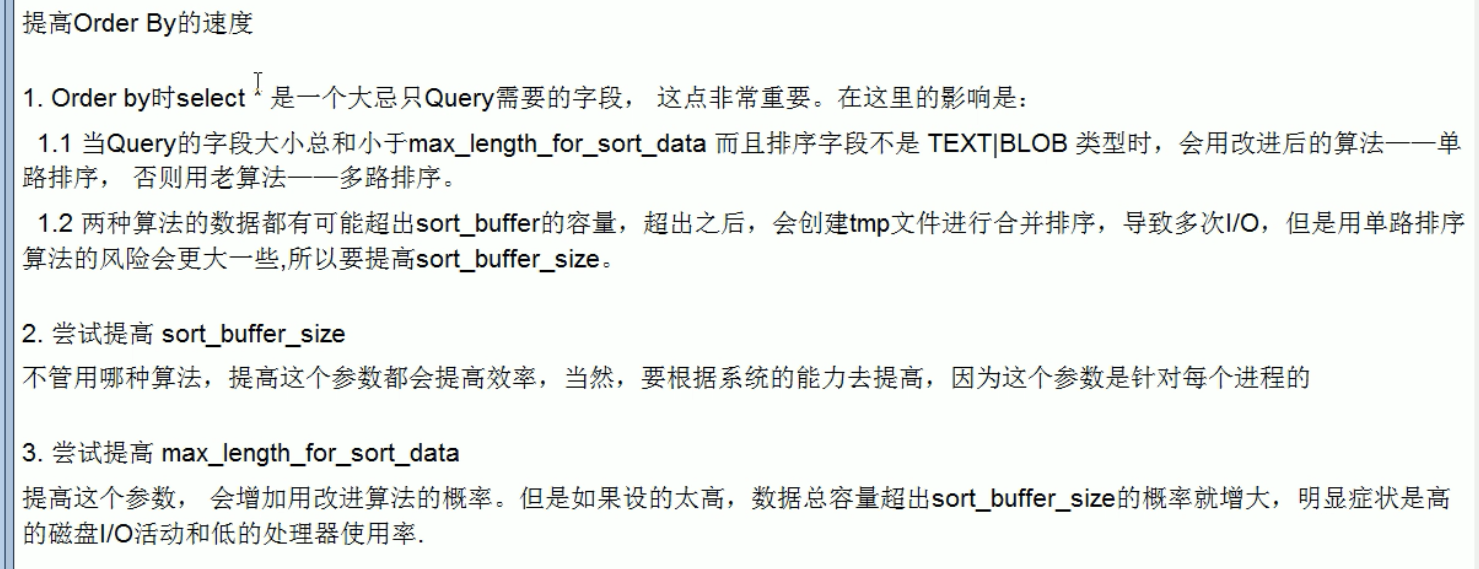 mysql之索引优化案例二永远小表驱动大表 1)优化原则 小表驱动大表,既小的数据集驱动大的数据集 2)案例 Order by 关键字优化 1)order by子句,尽量index方式排序,避免使用filesort排序 2)尽可能在索引列上完成排序操作,遵照索引建的最佳左前缀 3)如果不在索引列上,filesort有两种算法,mysql就要启动双路排序和单路排序 版权声明:本文为K_520_W原创文章,遵循CC 4.0 BY-SA版权协议,转载请附上原文出处链接和本声明。原文链接:https://blog.csdn.net/K_520_W/article/details/108537199