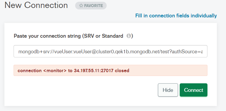 mongo compass连接不上远程服务器的原因有很多,我也遇到过此类问题,我是因为隔了一周之后没有使用mongodb cloud 远程数据库,再次连接的时候的发现怎么连也连接不上,出现这个错误:本人使用的远程服务器地址是(cloud.mongodb.com)