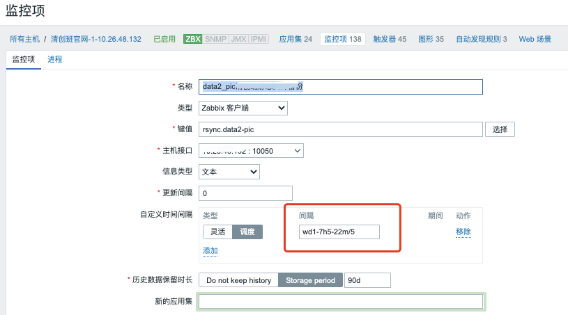 红框内表示周一到周日5点到22点间每隔5分钟获取一次监控结果