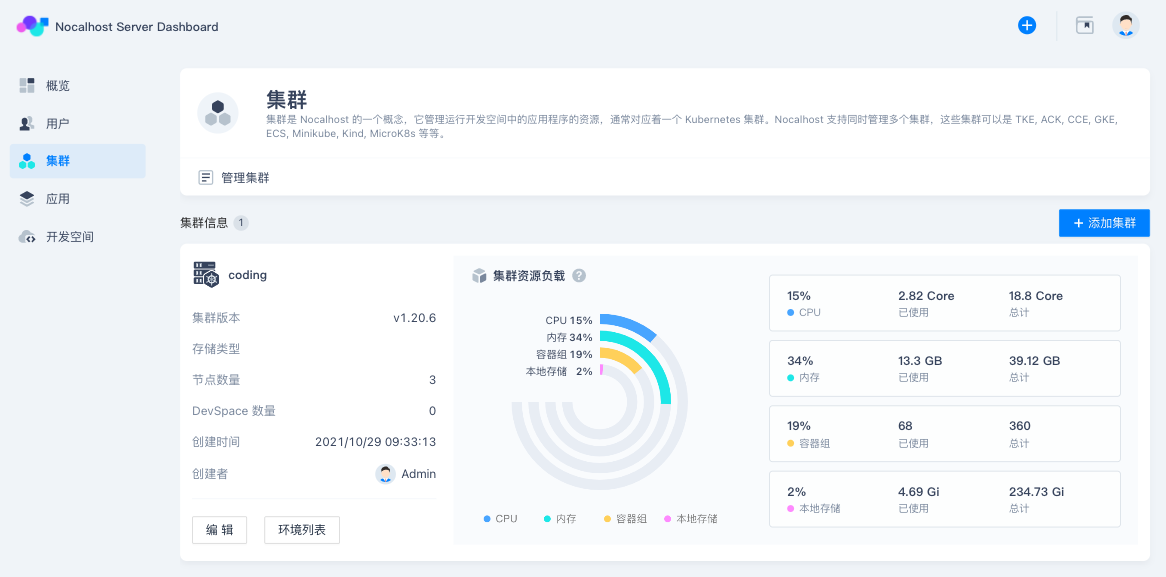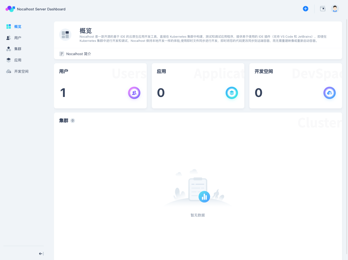 Nocalhost Server 多用于管理整个团队的 Nocalhost 研发环境,因此我们首先需要添加可进行管理的集群。