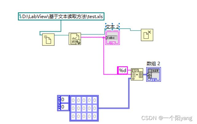 创建的路径为:D:\LabView\基于文本读取方法\test.xls