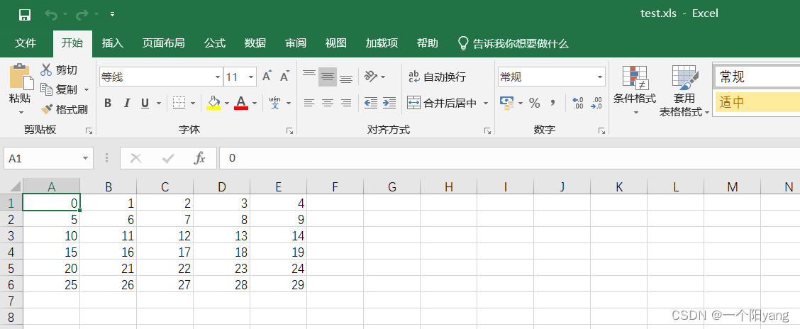 这样的话就写了一个文件test.xls 创建的是一个二维数组是依次为从0-29的数