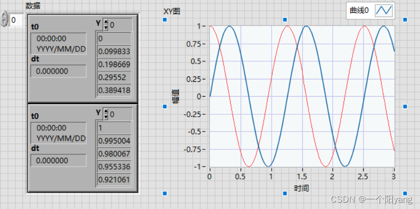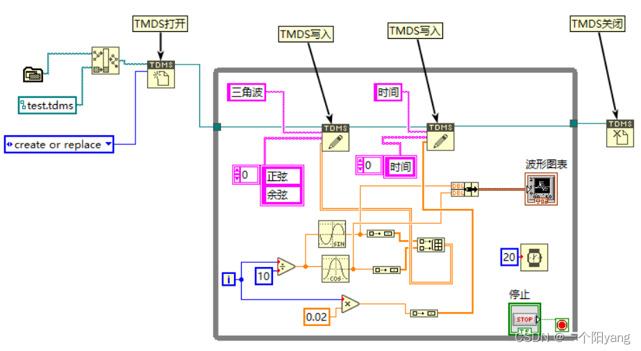 用一个while循环里面的功能是创建一个三角波和时间的TMDS文件。写入三角波的数据为正弦和余弦