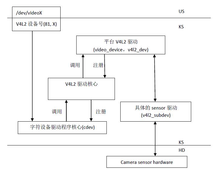 平台V4L2设备驱动:在V4L2框架下,根据平台自身的特性实现与平台相关的V4L2驱动部分,包括注册video_device和v4l2_dev。