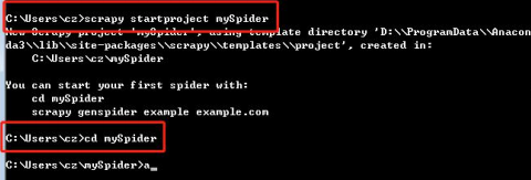 在开始爬取之前,必须创建一个新的 Scrapy 项目。进入自定义的项目目录中,运行下列命令: