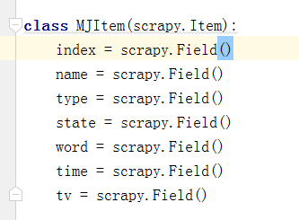 接下来明确我们需要爬取的内容,在items中写好我们定义的字段(可以通过创建一个 scrapy.Item 类, 并且定义类型为 scrapy.Field 的类属性来定义一个Item(可以理解成类似于 ORM 的映射关系)。)