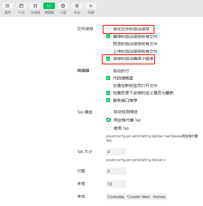 要做微信小程序,就下载了微信开发者工具,结果写了两行代码就发现没有保存后自动编译,后来发现是设置的问题,需要设置以下两点,然后就可以了