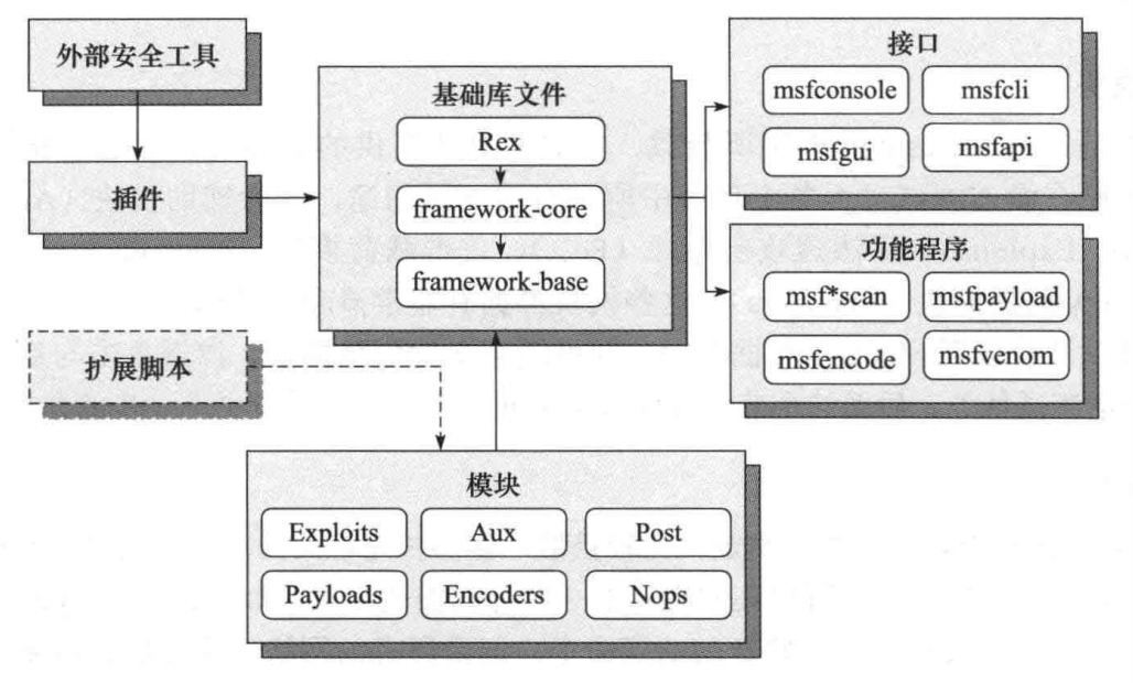 Exploits | 利用系统漏洞进行攻击的动作,此模块对应每一个具体漏洞的攻击方法(主动、被动) |