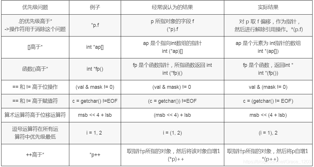 ||的优先级最低。下表是前辈们整理出来的易错的优先级问题,非常具有代表性: