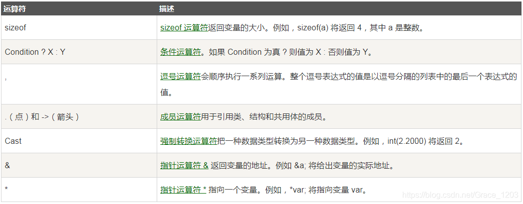 .(点)和 —>(箭头):成员运算符,用于引用类、结构和共用体的成员。