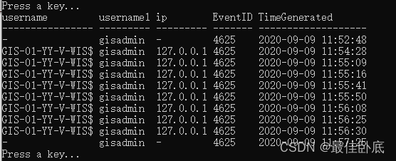 LogParser.exe -i:EVT "SELECT TimeGenerated as LoginTime,EXTRACT_TOKEN(Strings,5,'|') as username FROM c:\11.evtx where EventID=4625"3. RDP爆破使用的用户名及爆破次数