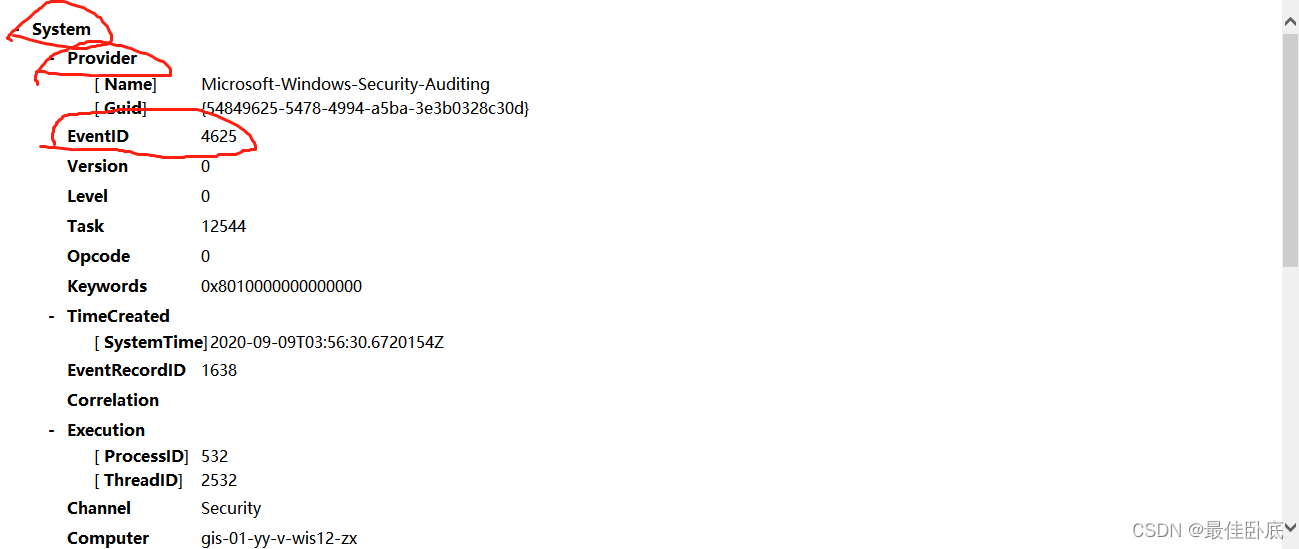 EventID:该值为System节点下的EventID;