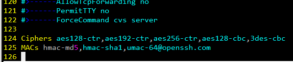 然后复制上面的这两行到/etc/ssh/sshd_config中: