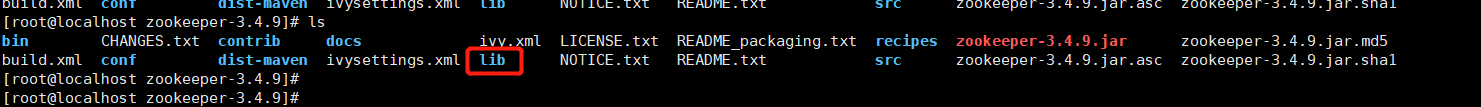 对比以前搭建的 zookeeper(3.4.9) ,以前的 zookeeper 安装路径下有一个 lib 目录,而 3.5.6 版本没有,将 lib 复制到到 3.5.6 版本的安装目录。