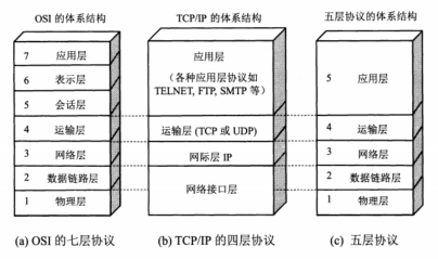 图c的五层协议体系结构综合了OSI和TCP/IP的优点,既简洁又能将概念阐述清楚。我们以图c为依据,自上至下对每一层的具体作用进行阐述。
