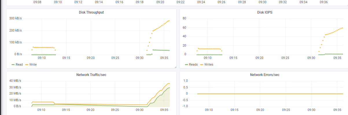 expr: sum by (instance) (irate(node_disk_bytes_written[2m])) / 1024 / 1024 > 50