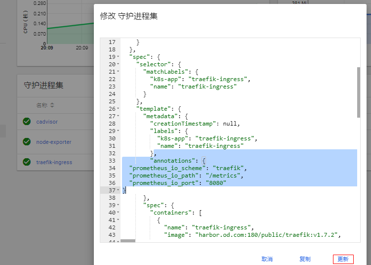 [root@hdss7-200 ~]# docker image push harbor.od.com:180/public/kube-state-metrics:v1.5.01.1.2、准备资源配置清单