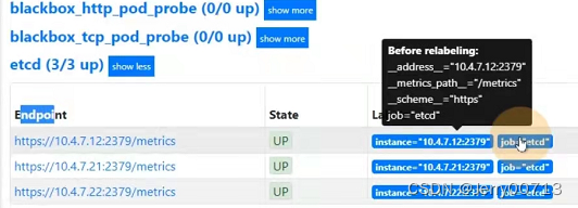 服务发现:(重点)两种发现目标的方式,一种是基于kuberntes本身元数据的自动发现,叫kuberntes_sd(kuberntes_service discovery)。专门用来服务基于k8s编排的容器云监控的自动发现,重中之重。另一种叫做file_sd。专门应用于不在k8s中服务,也可以实现自动发现,但是此方法需要写自动发现规则。是你把自动发现规则写到文件 ,基于文件自动发现。
