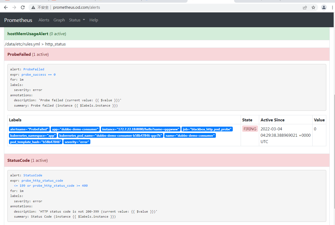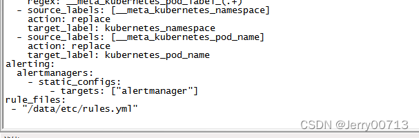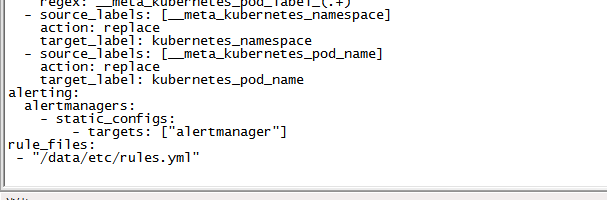 summary: "Pod cpu usage percent has exceeded 80% (current value: {{ $value }}%)"修改Prometheus配置,使其调用alter。如果alter跟Prometheus不在一个命名空间还需要带上命名空间