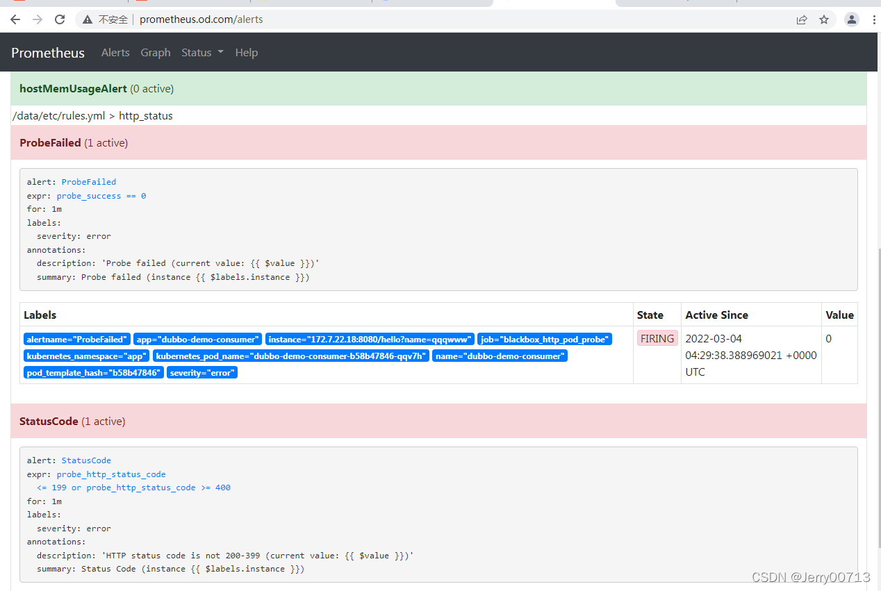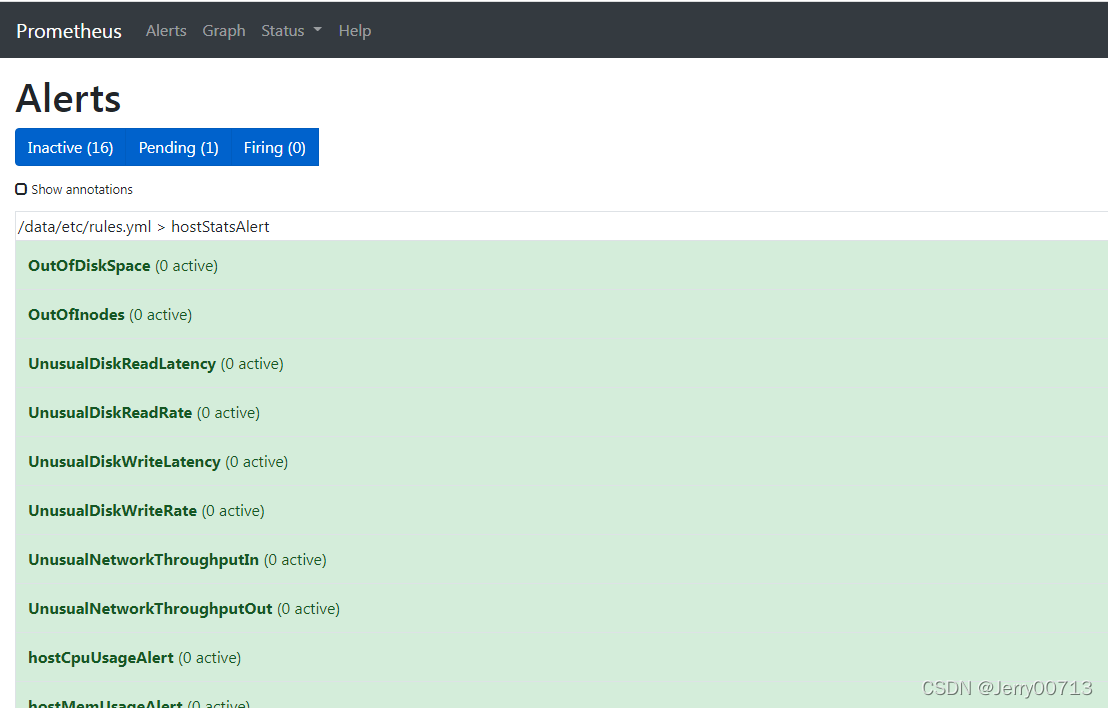 查看Alerts,查看报警规则