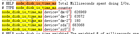 expr: rate(node_disk_write_time_ms[1m]) / rate(node_disk_writes_completedl[1m]) > 100