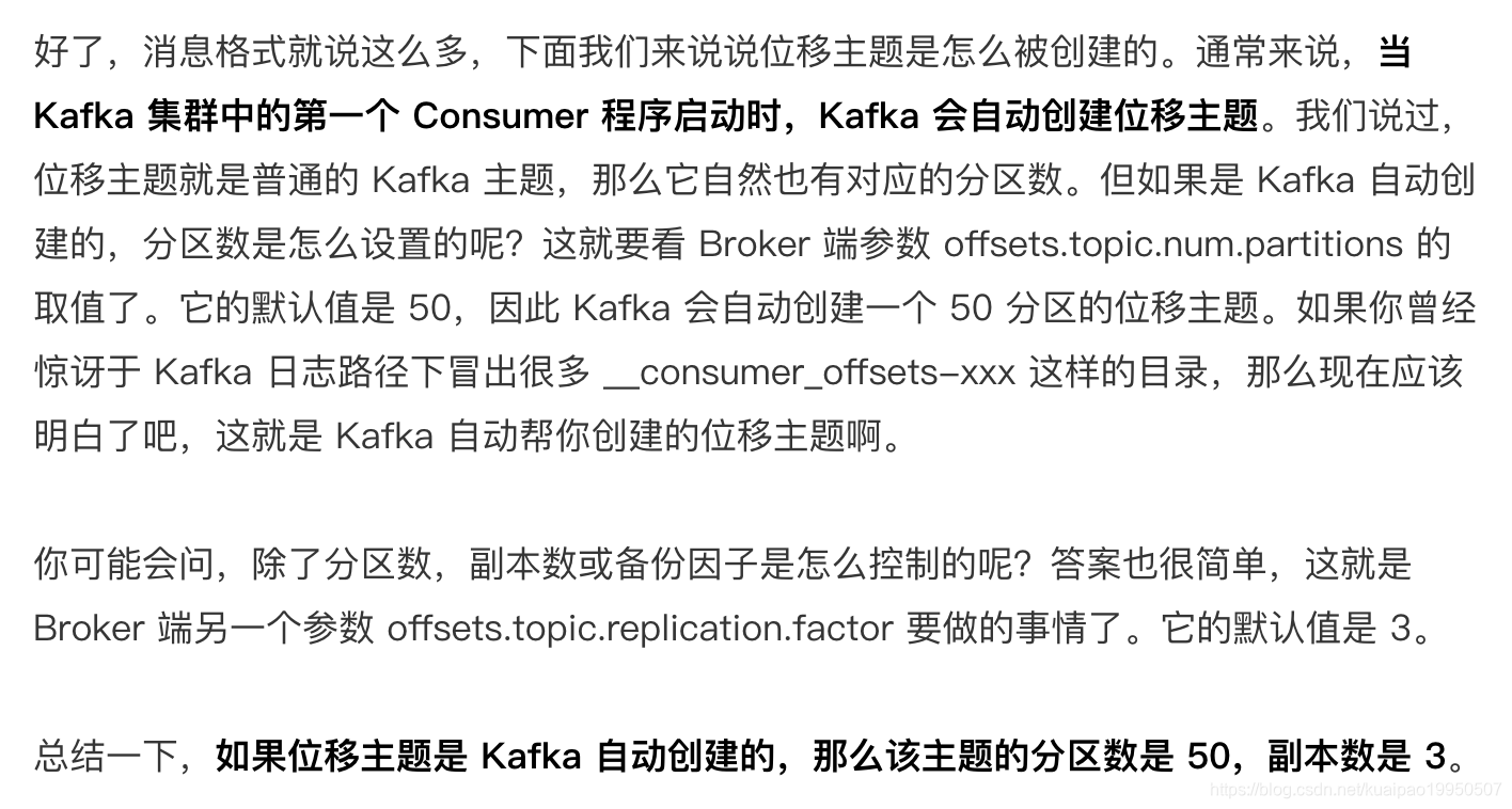 位移主题的 Key 中应该保存 3 部分内容:<Group ID,主题名,分区号 >