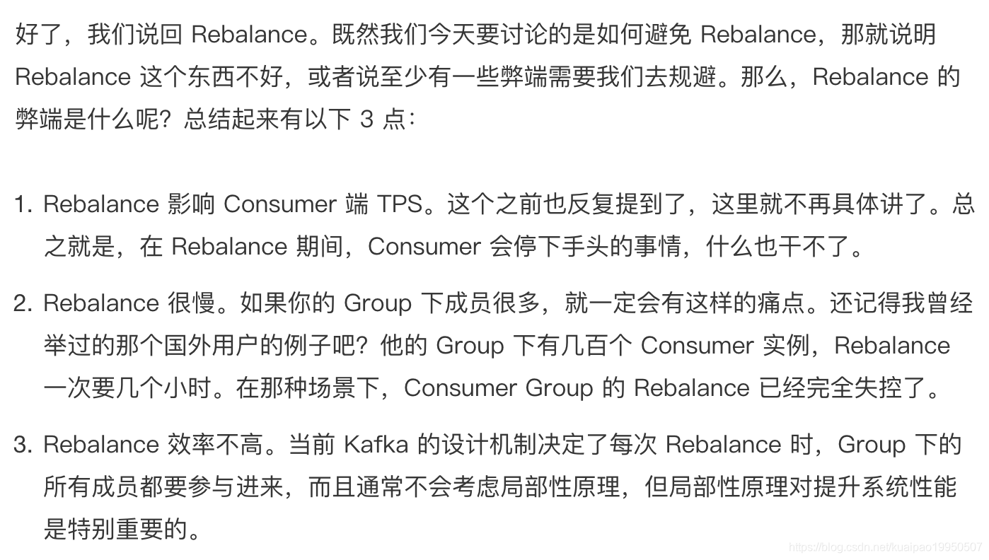 就我个人经验而言,在真实的业务场景中,很多 Rebalance 都是计划外的或者说是不必要的。我们应用的 TPS 大多是被这类 Rebalance 拖慢的,因此避免这类 Rebalance 就显得很有必要了。下面我们就来说说如何避免 Rebalance