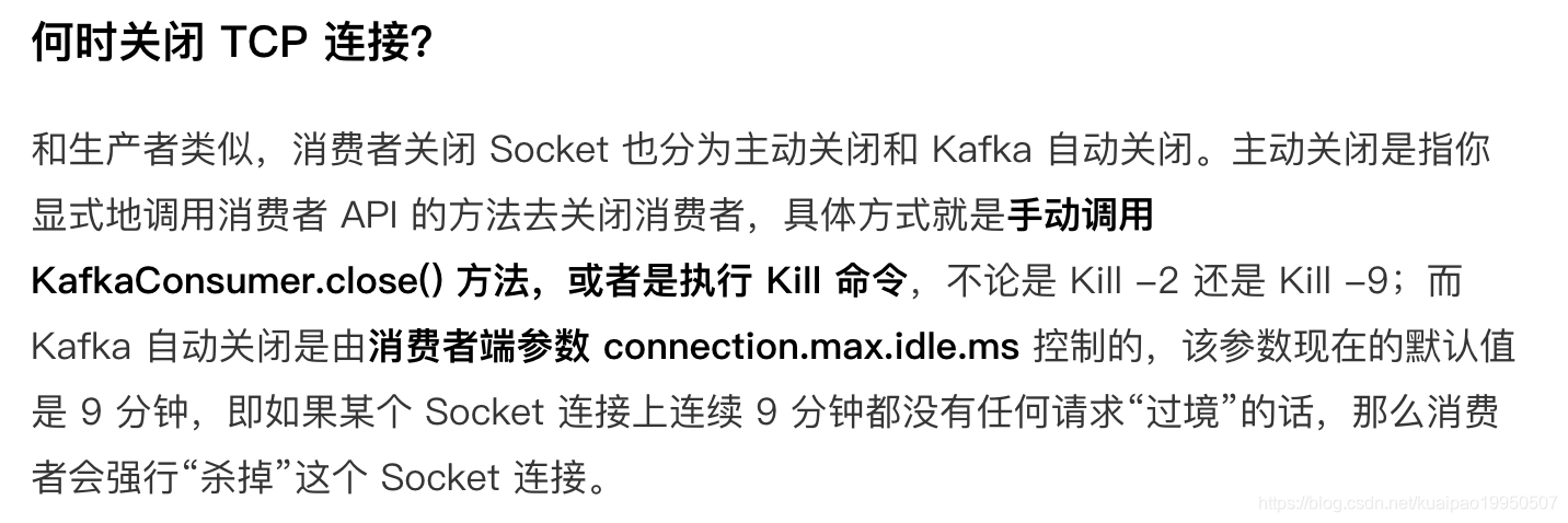 TCP 连接是在调用 KafkaConsumer.poll 方法时被创建的。