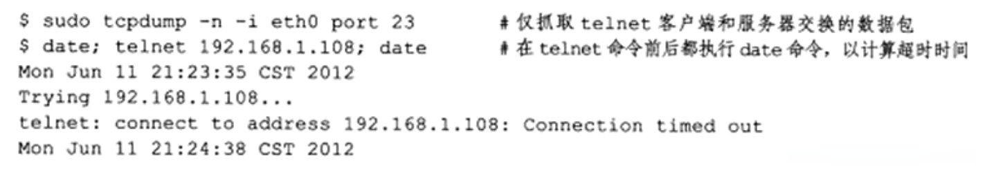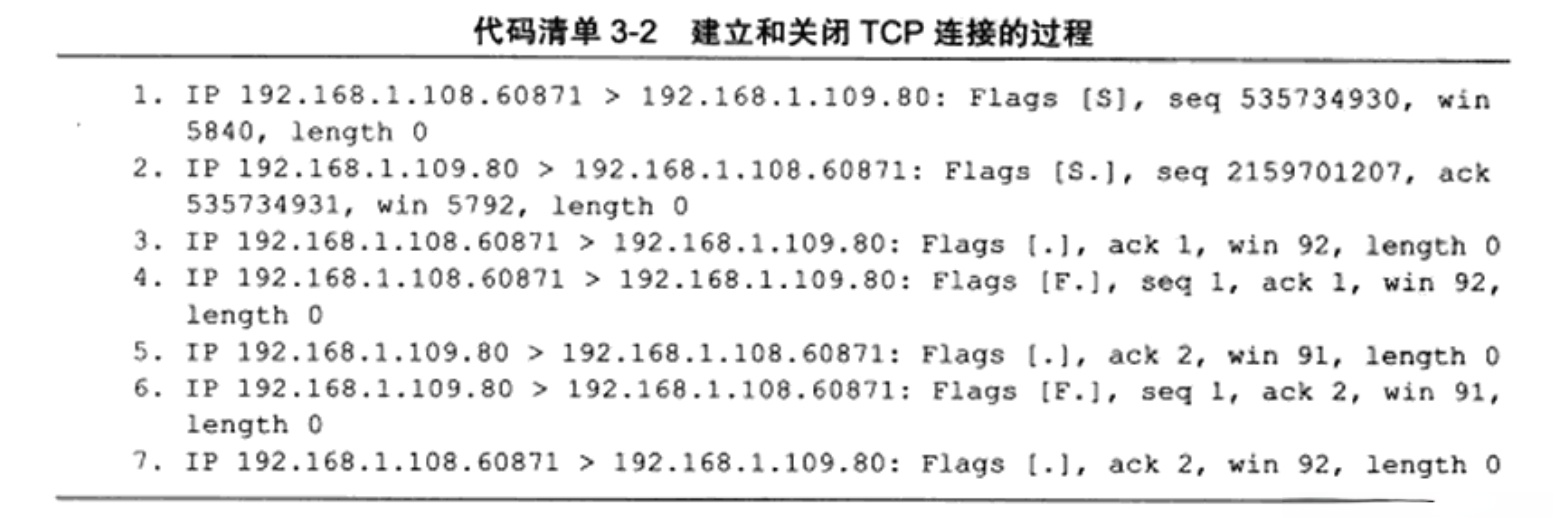 在执行telnet命令并在两台通信主机之间建立TCP连接时(telnet输出Conectedto192.168.1.109),输入Ctrl+]调出telnet程序的命令提示符,然后在telnet命令提示符后输入quit退出telnet客户端程序,从而结束TCP连接。在整个过程中,tcpdump输出的内容如代码列表3-2所示。