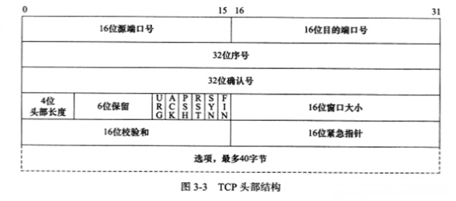 TCP头部结构如下图所示,其中许多字段为管理TCP连接和控制数据流提供了足够的信息。