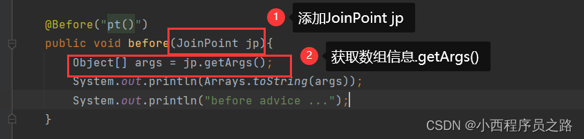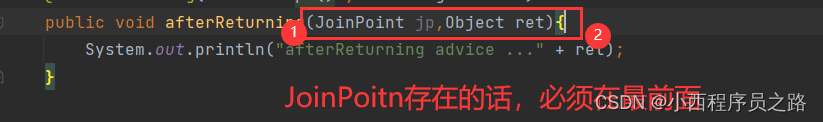 注:JoinPoint的使用处理,若存在,必须是在第一位。