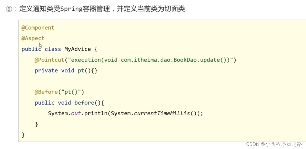 @Aspect:告诉Spring我下面的程序内容是AOP