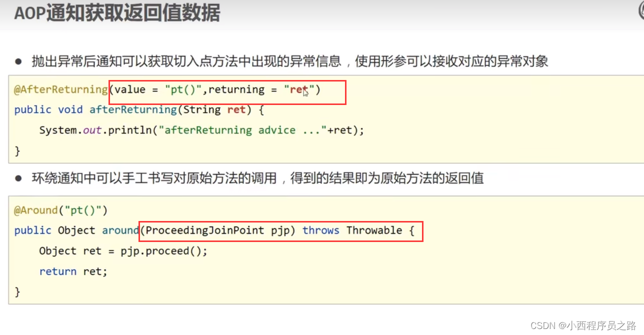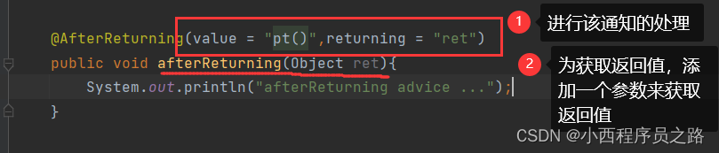 2、@AfterReturning通知可以获取返回值。