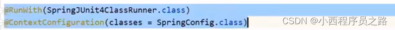 在整合测试junit程序中,设定类运行器需要添加注解@RunWith(SpringJUnit4ClassRunner.calss)