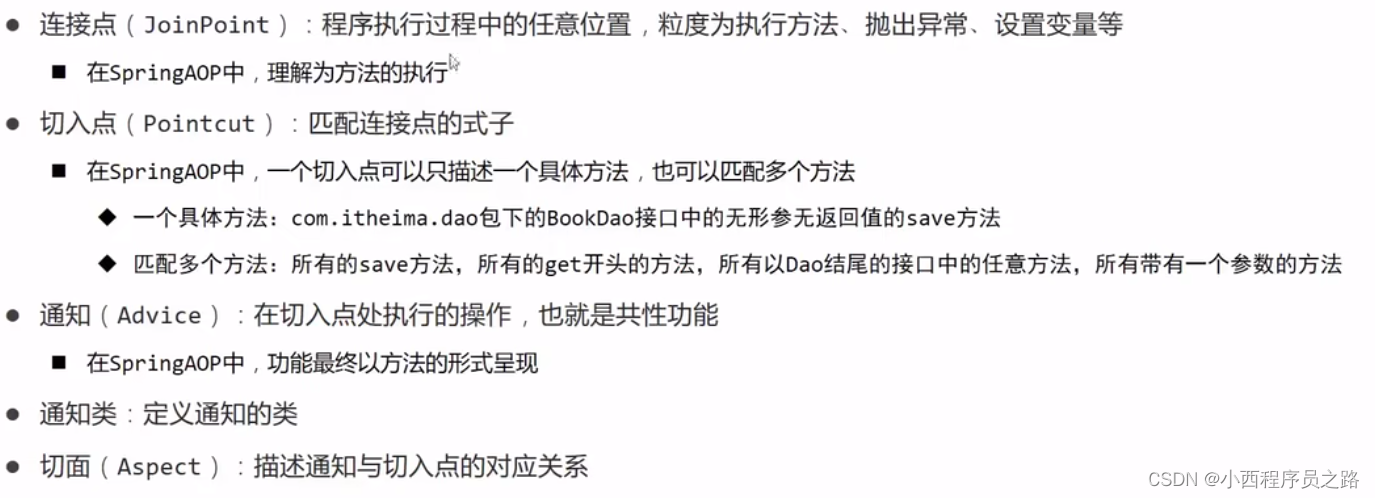 2、连接点的范围大,切入点的范围小,连接点包含切入点。